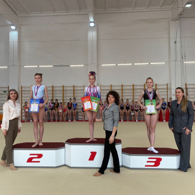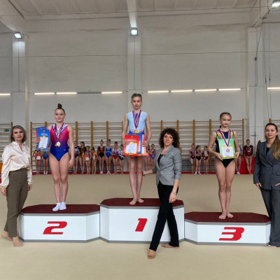 Охремчик Вероника - серебро в многоборье по программе КМС, золото на бревне и вольных упражнениях, серебро - в опорном прыжке;