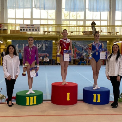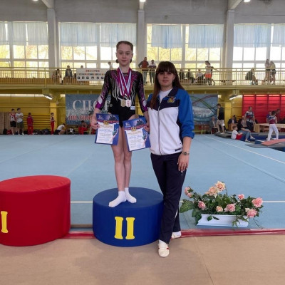 Набокова Кира - бронза в многоборье по программе I разряда, серебро в финале на брусьях и бревне